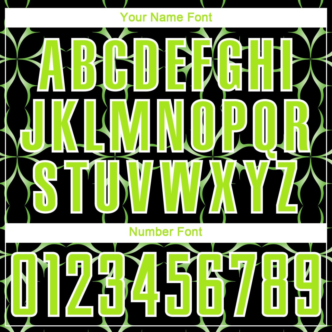 Custom Black Neon Green-White Damask Pattern Sublimation Soccer Unifor